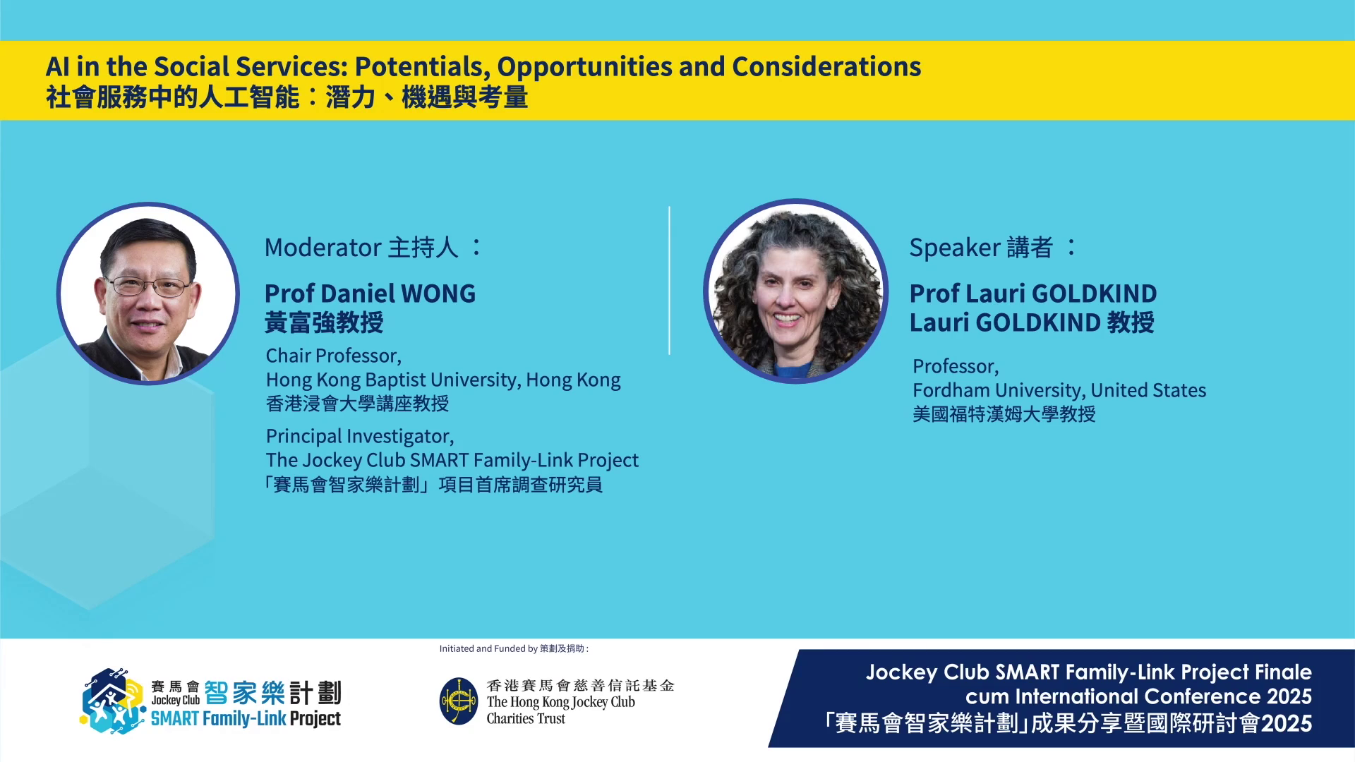 所有演講、影片及相關資料乃「賽馬會智家樂計劃成果分享暨國際研討會2025」為促進知識交流而分享之內容,僅供教育與資訊用途。任何人使用來源於本研討會內的信息、想法、概念或事實時,均需註明出處。如需查詢內容,請聯繫相關講者及資料提供者。
