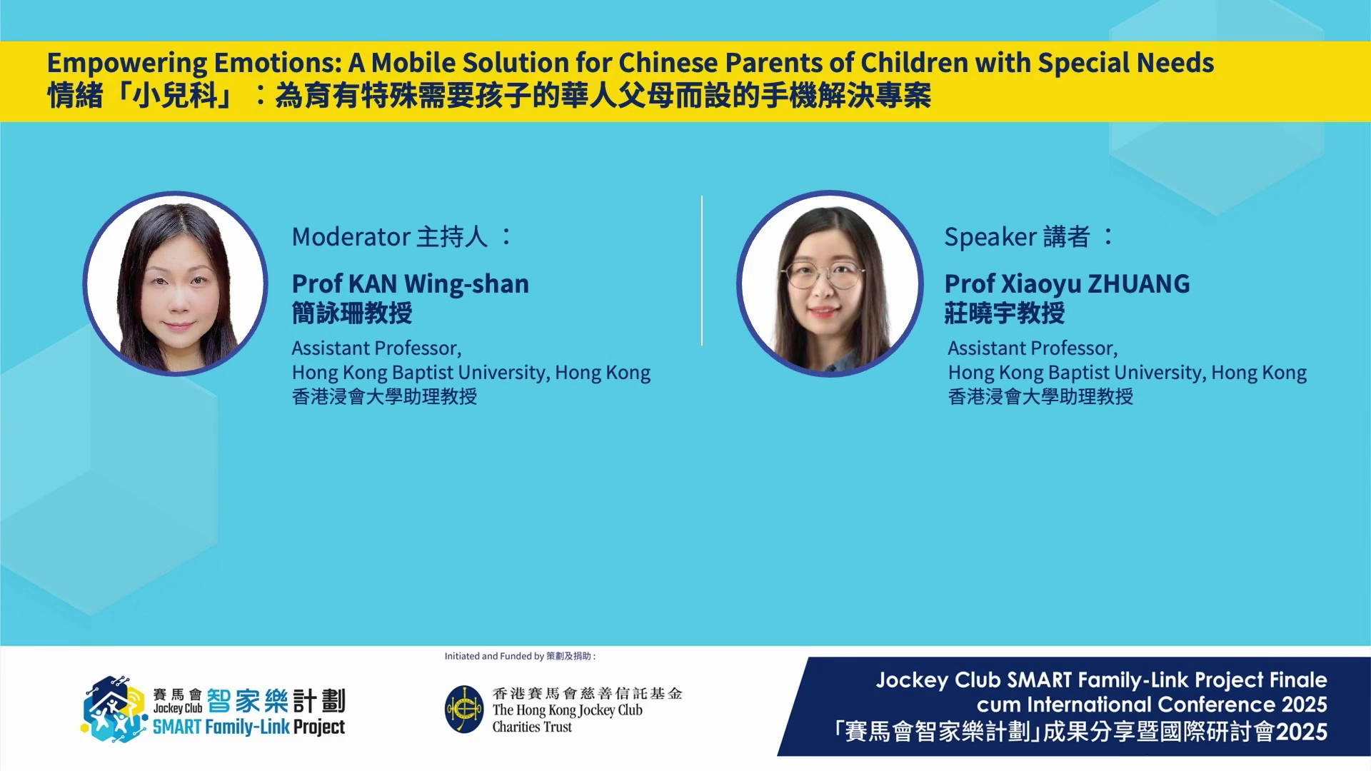 所有演講、影片及相關資料乃「賽馬會智家樂計劃成果分享暨國際研討會2025」為促進知識交流而分享之內容,僅供教育與資訊用途。任何人使用來源於本研討會內的信息、想法、概念或事實時,均需註明出處。如需查詢內容,請聯繫相關講者及資料提供者。